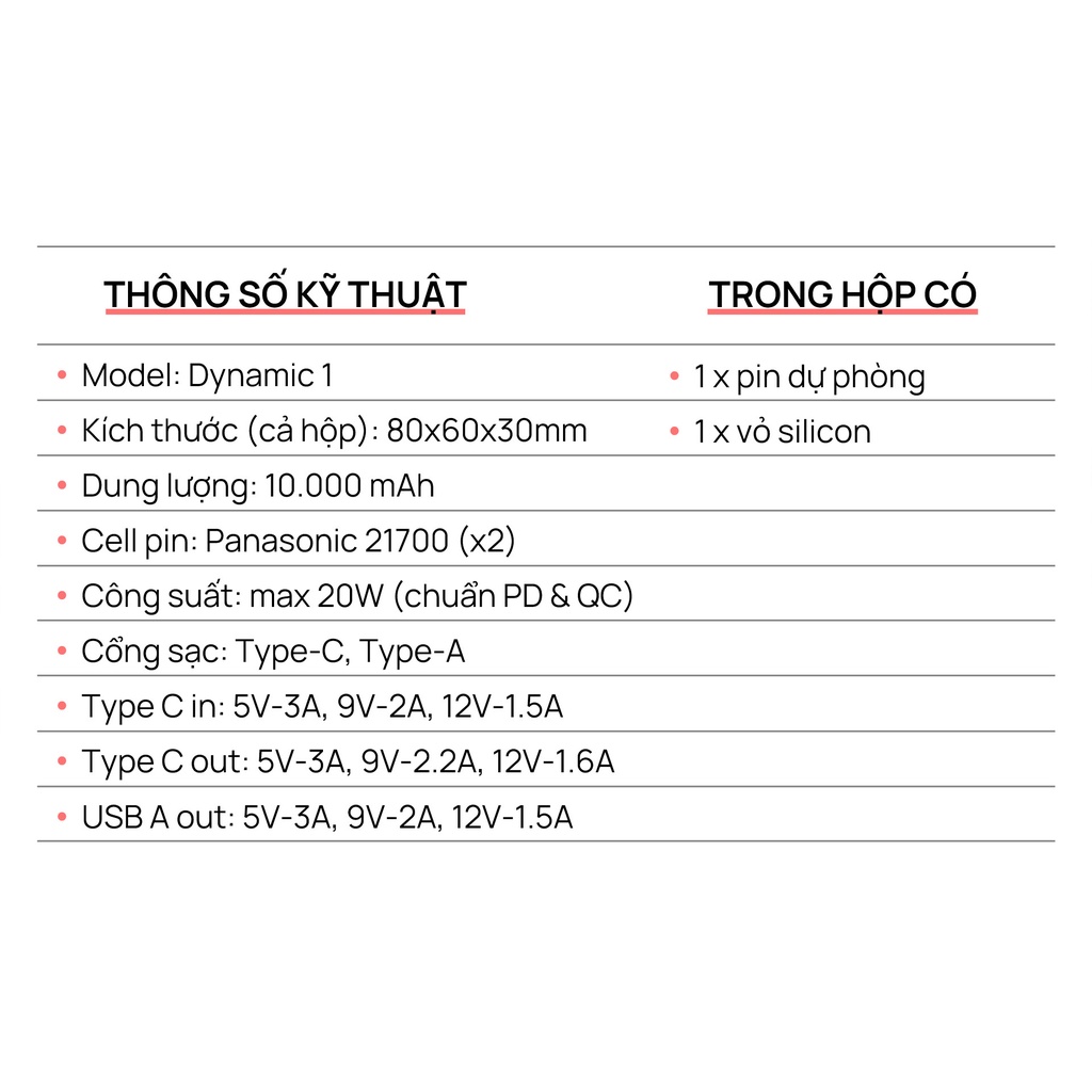 - Dung lượng lên tới 10.000mAh, công suất 20W- Thiết kế với kích thước nhỏ gọn, dễ dàng mang đi