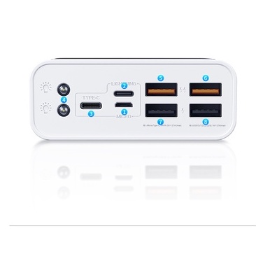- Tích hợp 4 cổng ra 2.1A 3 cổng vào Type C. Lighting, Micro.