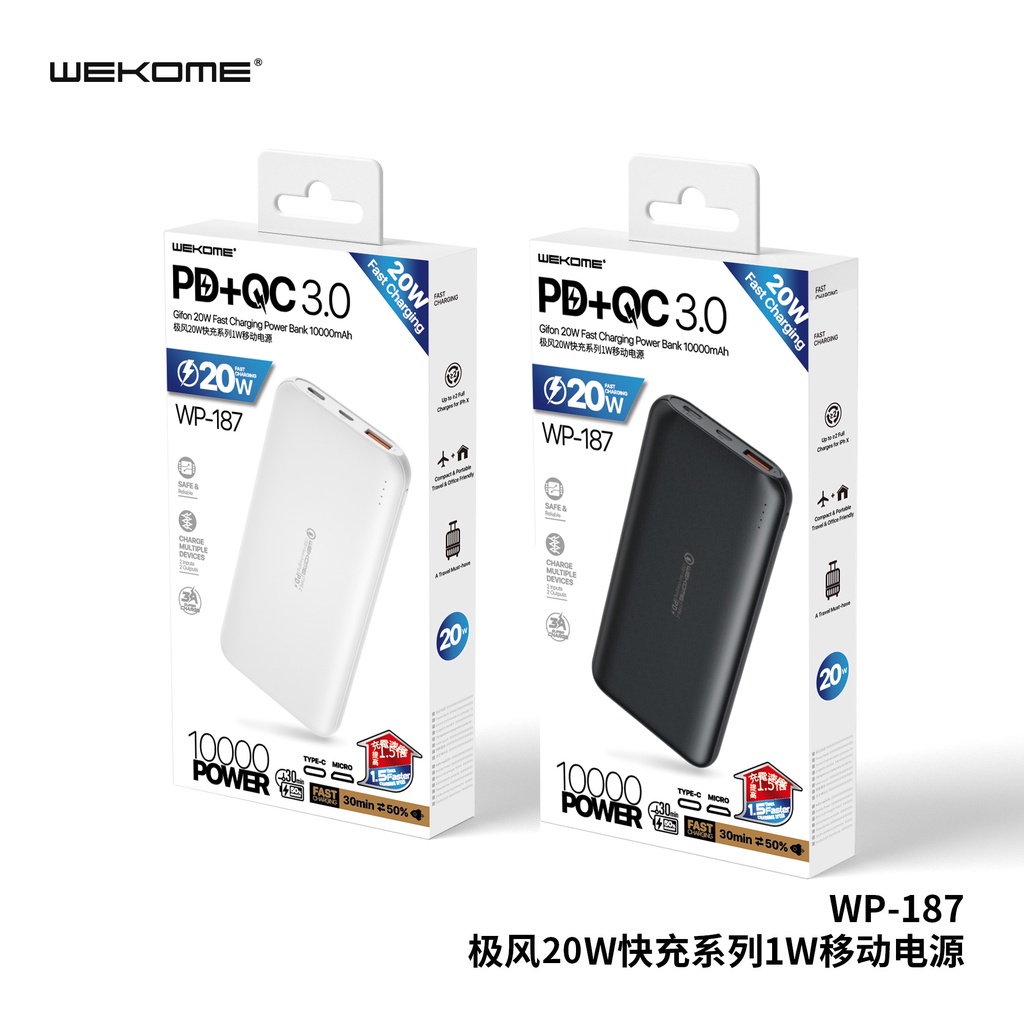 Điện Thoại & Phụ Kiện > Phụ kiện > Sạc dự phòng & Pin > Sạc dự phòng || Sạc dự phòng WEKOME WP-187/WP-189 10000-20000 mAh tích hợp sạc nhanh PD20WCòn hàng