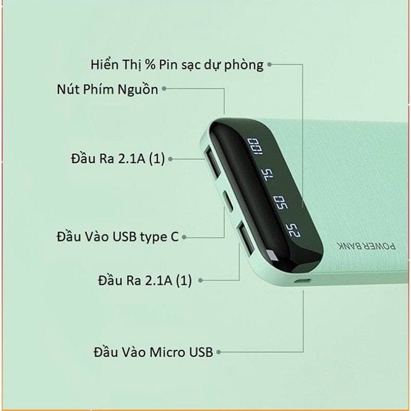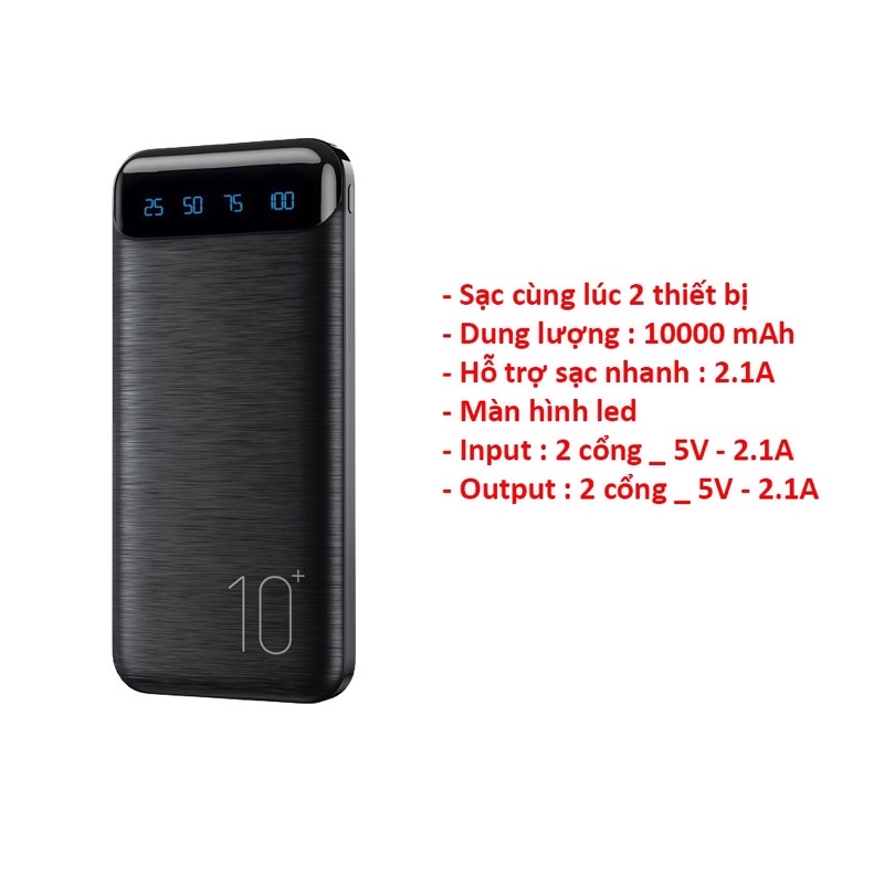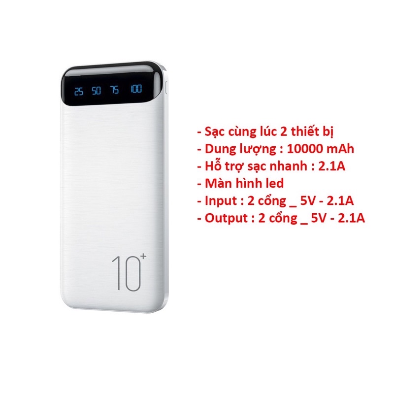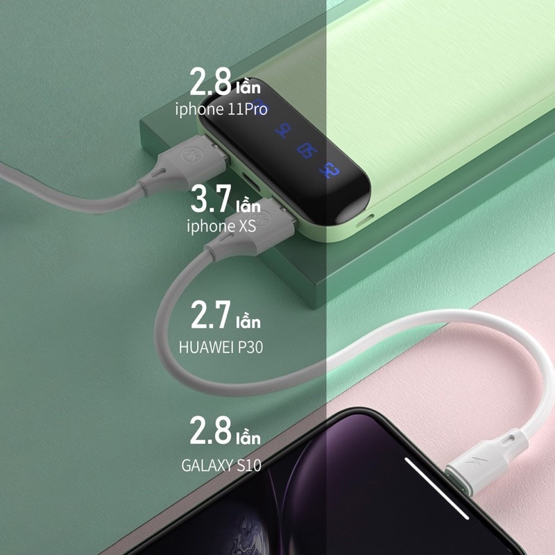 - Sạc dự phòng 10.000mAh nhỏ gọn thời trang WP sạc 2 thiết bị cùng lúc.