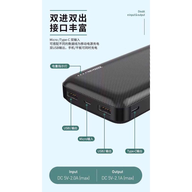 -Có đầu vào kép gồm cổng sạc Micro usb và cổng cáp Type-C