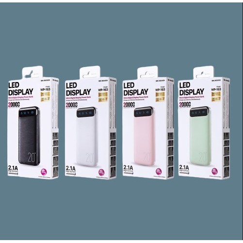 👍Sạc dự phòng 20.000mAh nhỏ gọn thời trang WP-163 sạc 2 thiết bị cùng lúc. Hỗ trợ sạc nhanh 2.1A. Chất liệu nhựa PC+ABS, an toàn, chống cháy nổ.