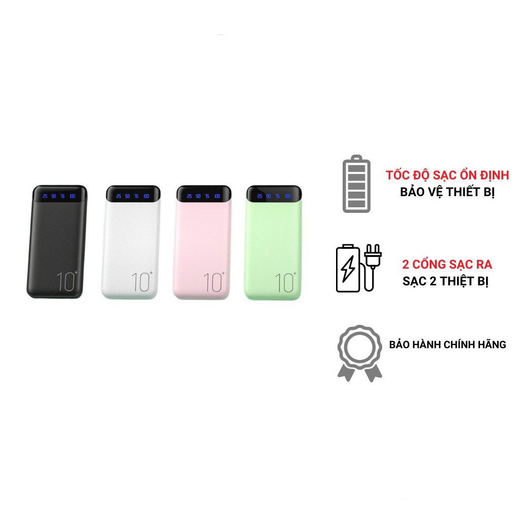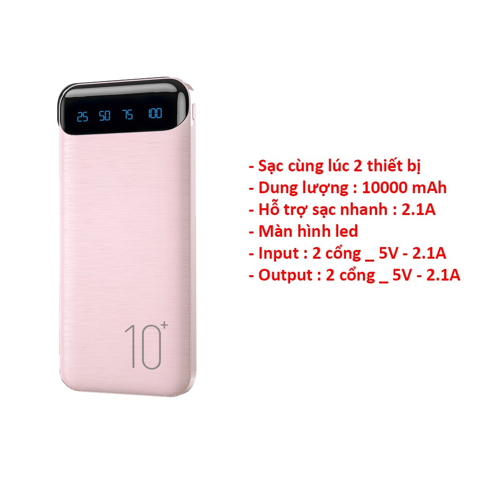 - Sạc dự phòng 10.000mAh nhỏ gọn thời trang WP-161 sạc 2 thiết bị cùng lúc.