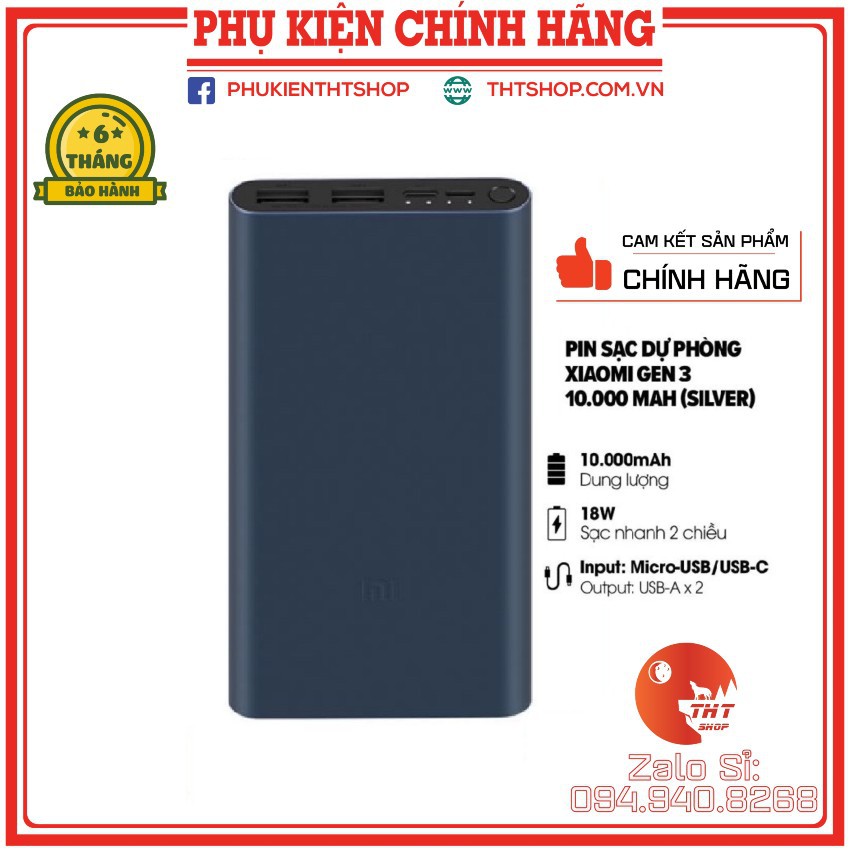THÔNG SỐ Pin sạc dự phòng 10000mAh/20000mAh Xiaomi gen 3 18W, 45W: