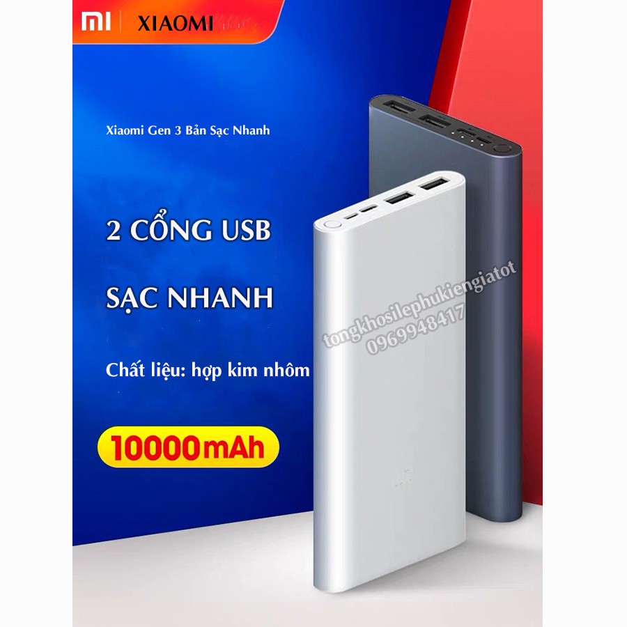Sạc dự phòng Xiaomi 10000mAh Gen 3 Bản Sạc Nhanh 2020 – Xiaomi Mi 18W Fast Charge Power Bank chính hãngCharge Power Bank chính hãng - Sạc dự phòng đầu tiên khả dụng cho laptopSản phẩm này là hàng nhập khẩu, Chính hãng có thể Check code trên trang web Xiaomi.