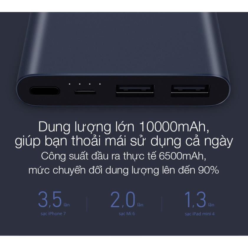 Sạc Dự Phòng Xiaomi Gen 3 Version 2018 10000 mAh 2 Cổng USB Hỗ Trợ QC 3.0 Bảo hành 6 tháng 1 đổi 1
