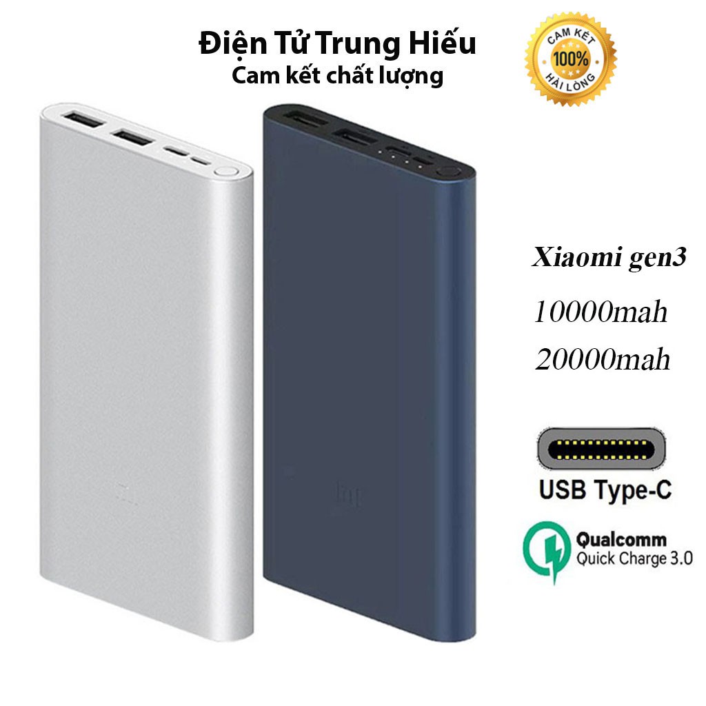 Pin sạc dự phòng Xiaomi 10000mAh gen 3 PLM13ZM bản sạc nhanh 2019, với thiết kế tinh tế, vỏ kim loại sang trọng, có thể sạc nhanh 2 chiều 18w, chuẩn QC3.0, với dung lượng 10000mAh, là sản phẩm không thể thiếu khi bạn đi làm hay đi du lịch...