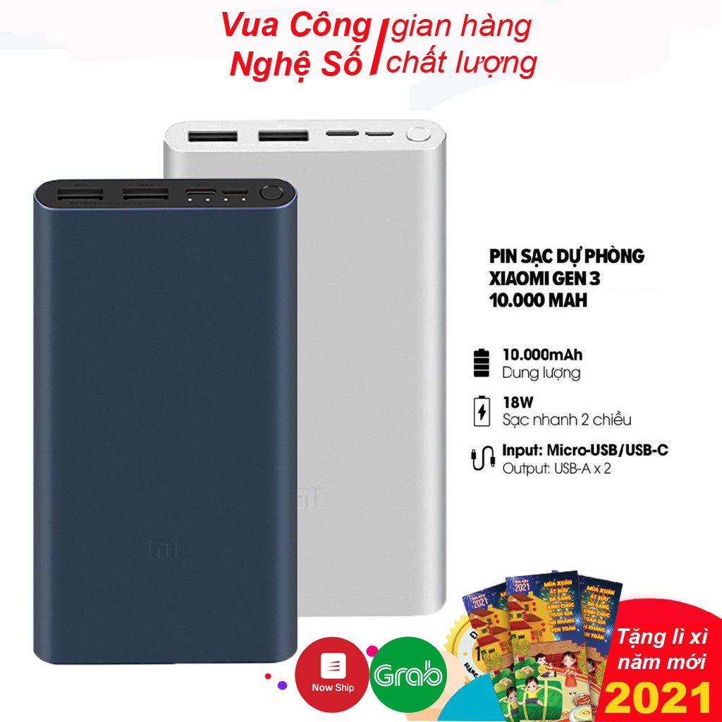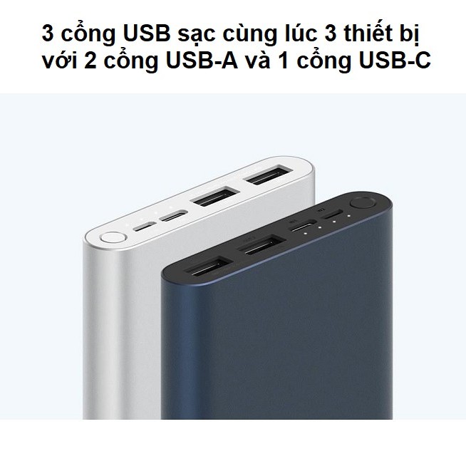 - Sạc dự phòng 10000mAh/20000mAh Xiaomi gen 3 với 3 cổng ra, cho phép sạc cùng lúc 3 thiết bị, công suất 45w cho phép bạn vừa có thể sạc cho laptop lại vừa có thể sạc cho điện thoại, dung lượng pin siêu khủng...