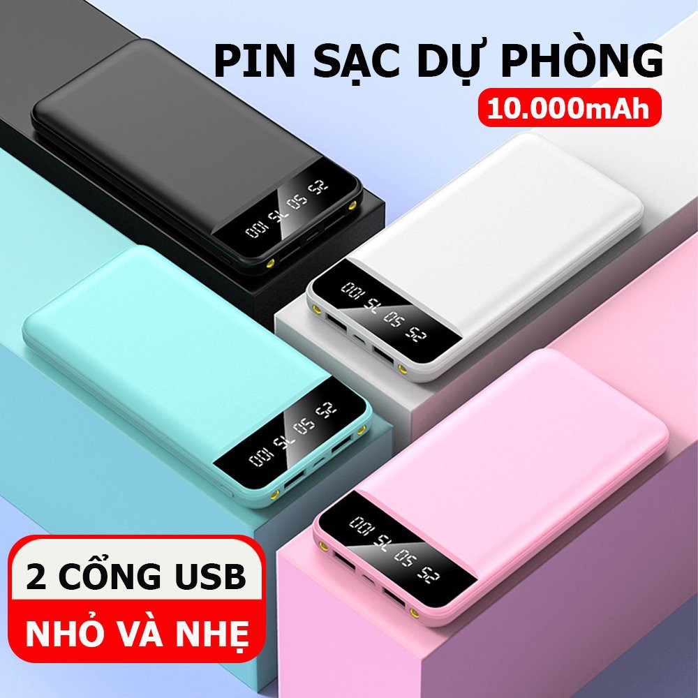 - Đâu ra tích hợp 2 cổng USB tiện dụng, cắm đồng thời 2 dây sạc, sạc cùng 2 thiết bị như như iphone, Samsung, xaomi, HuaweiSạc dự phòng 10000mah với thiết kế đơn giản, chip sạc thông minh đảm bảo an toàn cho mọi thiết bị