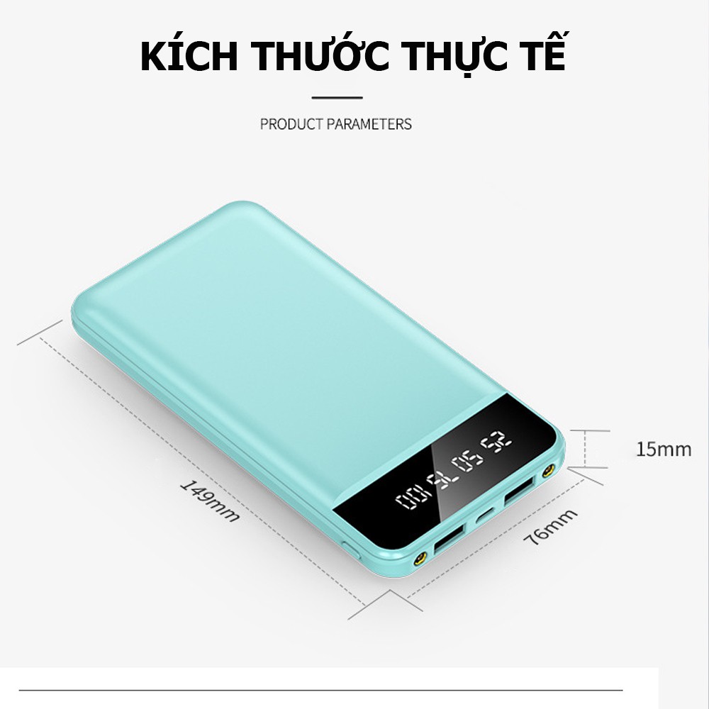 - Pin dự phòng 10000mAh trang bị chip xử lý thông minh khi sạc đảm bảo không gây nóng, quá dòng, quá áp và tuổi thọ của thiết bị. Lõi pin lithium polymer nên sạc có chất lượng tốt hơn, kích thước nhỏ hơn và sạc an toàn hơn.