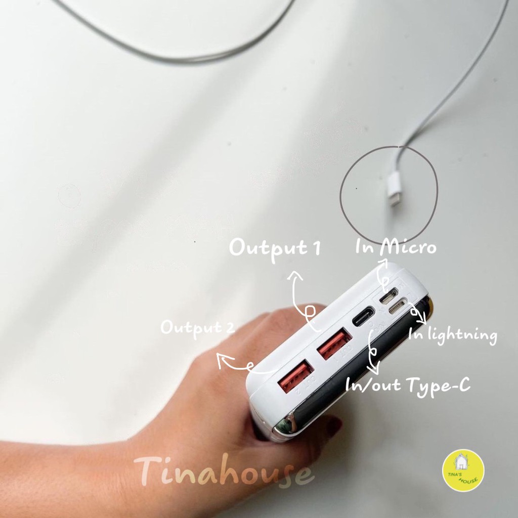 ✅3 cổng vào micro USB, Lightning và Type C tương thích tốt với cáp sạc của bạn