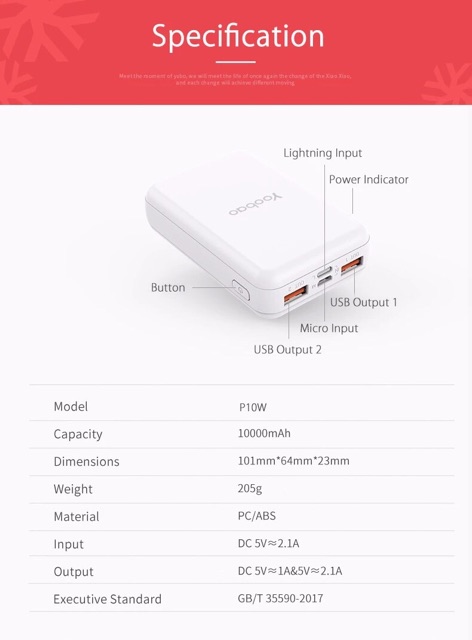 Giới thiệu SẠC DỰ PHÒNG YOOBAO P10W 10.000 mAh- Hàng chính hãng