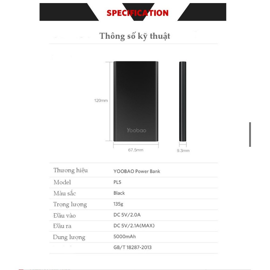 Sạc dự phòng Yoobao Polymer 5000mAh PL5 chính hãng