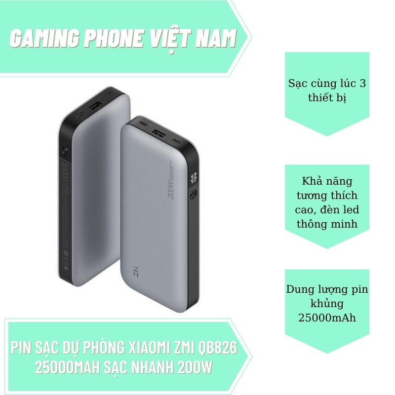 Giới thiệu [Mã 44ELSALE2 giảm 7% đơn 300K] Sạc Dự Phòng ZMI QB826 25000mAh Sạc Nhanh200W