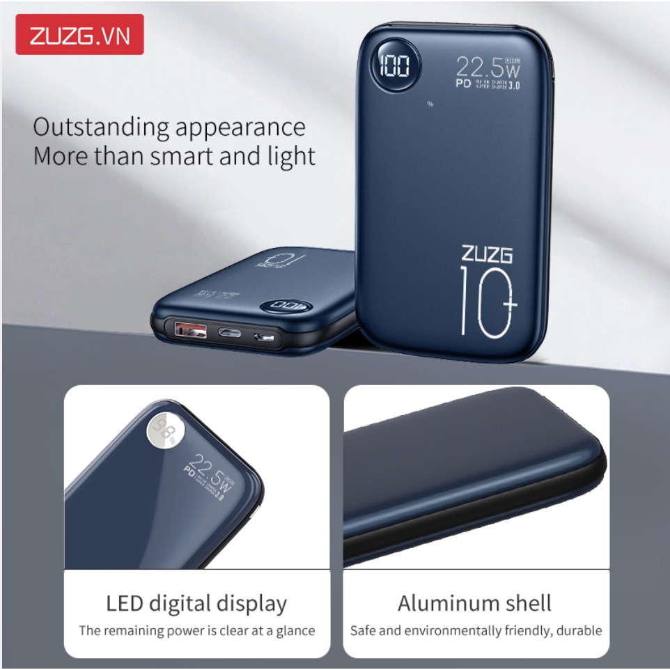 Sạc dự phòng ZUZG 10000mAH 22.5W LED J35 - Hàng chính hãng