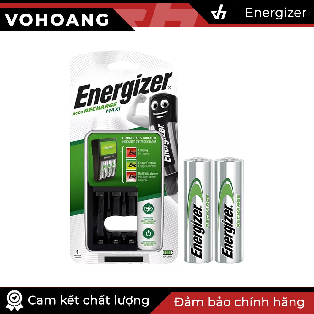Bộ sạc Energizer Charger kèm 2 pin sạc AA 2000mAh, tự ngắt sạc