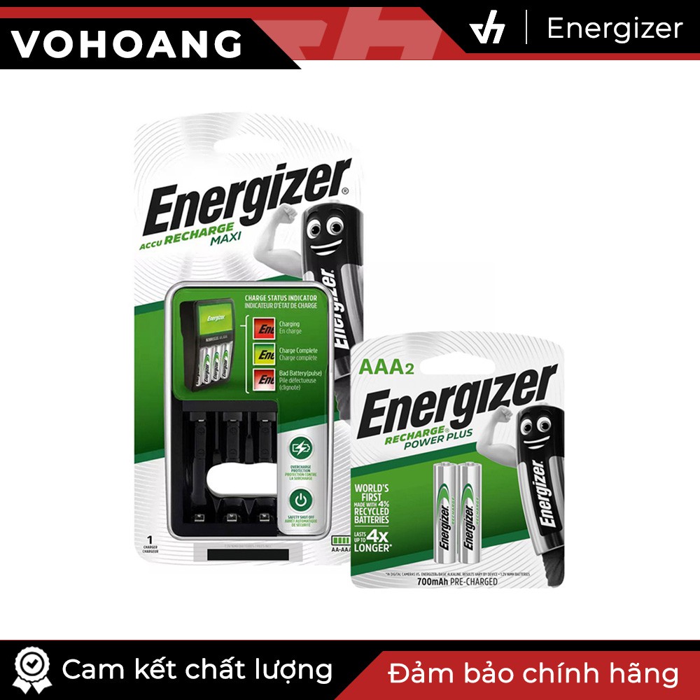 Bộ sạc Energizer Charger kèm 2 pin sạc AAA 700mAh, tự ngắt sạc, pin mới nguyên seal