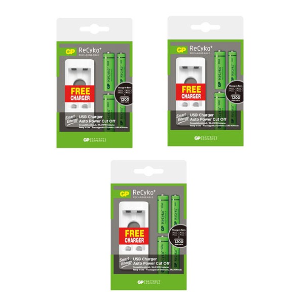 +++ Bộ 4 pin sạc Recyko+ GP bao gồm:- 2 viên pin Recyko+ size AA, dung lượng 1000mAh