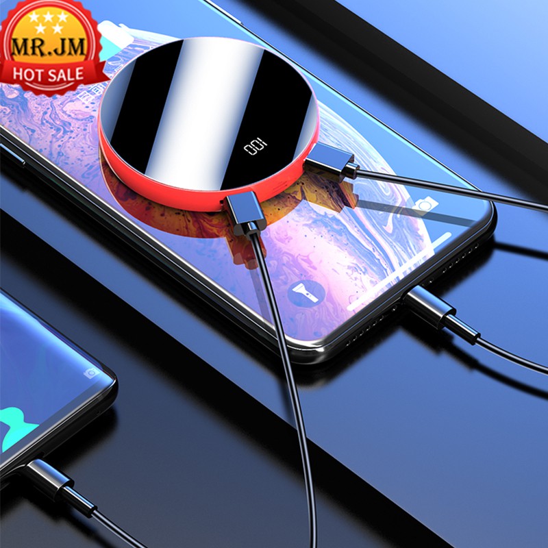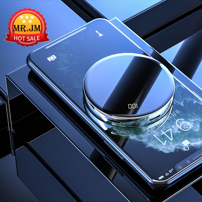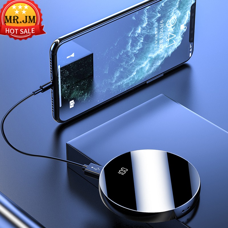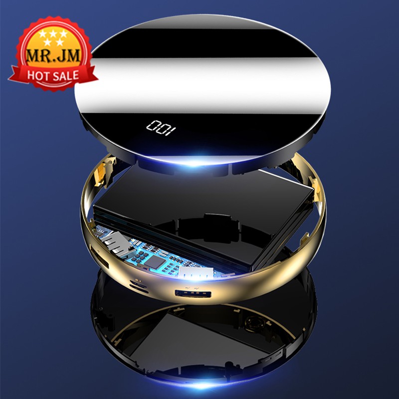 Điện Thoại & Phụ Kiện > Pin sạc dự phòng > 10000 - 20000mAh || [ SẠC GƯƠNG ] Pin Sạc Dự phòng 10000mAh Có đèn Pin Thiết kế hình tròn Mặt bóng kính 2 Output 2 InPutCòn hàng
