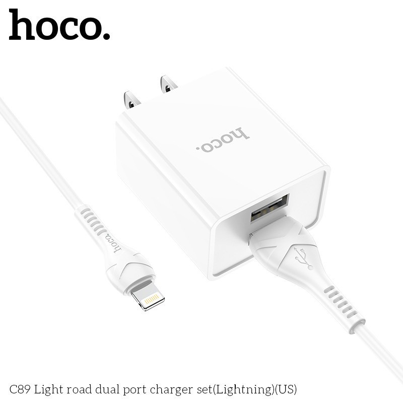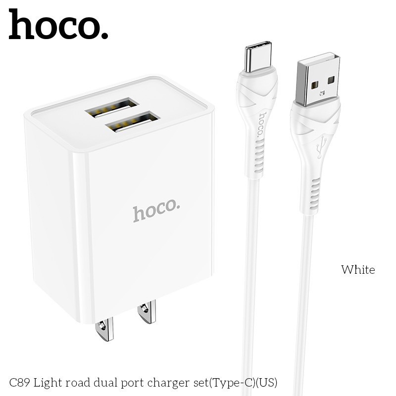 Bộ sạc Hoco C89 dòng 2.1A / 2 cổng ra đầu Lightning, Micro, Type-C dây cáp dài 1m - Chính hãng