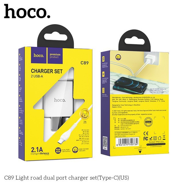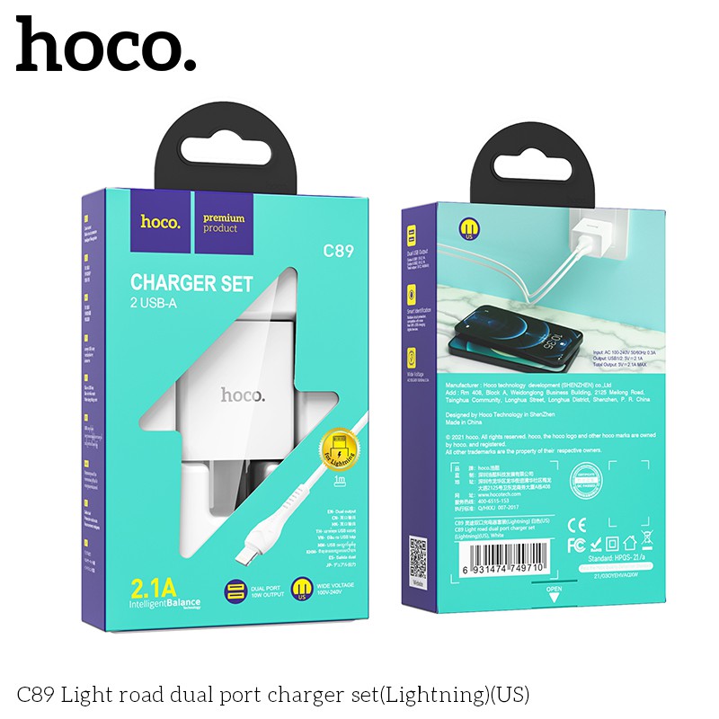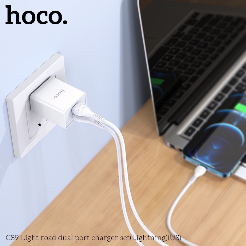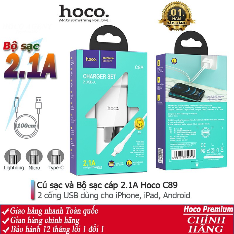 Giới thiệu Bộ sạc Hoco C89 dòng 2.1A / 2 cổng ra đầu Lightning, Micro, Type-C dây cáp dài 1m - Chính hãng