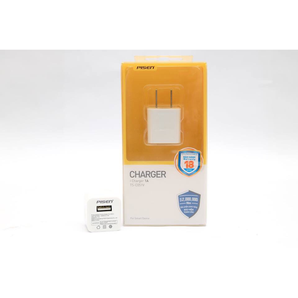 Điện Thoại & Phụ Kiện > Pin, Cáp & Bộ sạc > Cốc sạc || [Mã ELFLASH5 giảm 20K đơn 50K] Sạc Iphone Chính Hãng Pisen - i Charger 1A Smart - Bảo hành 18 thángCòn hàng