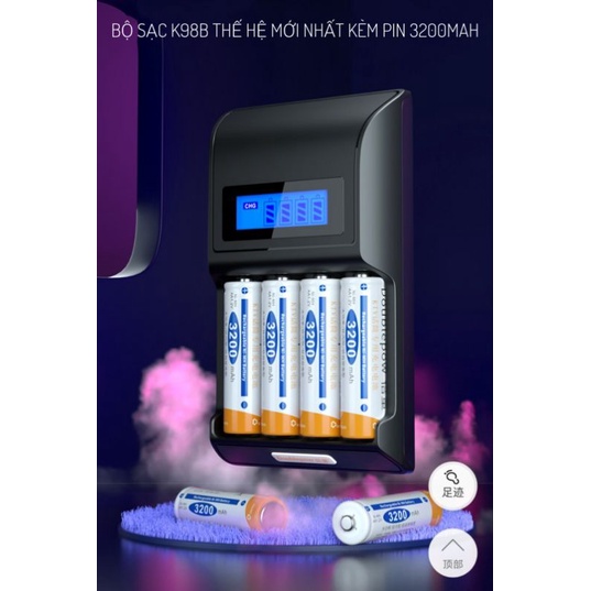 Giới thiệu Bộ sạc K98B + 4 Pin 2A 1200mAh Hiển thị mờ
