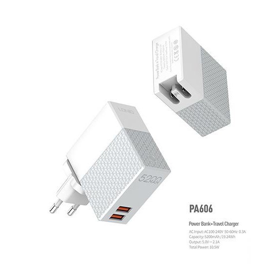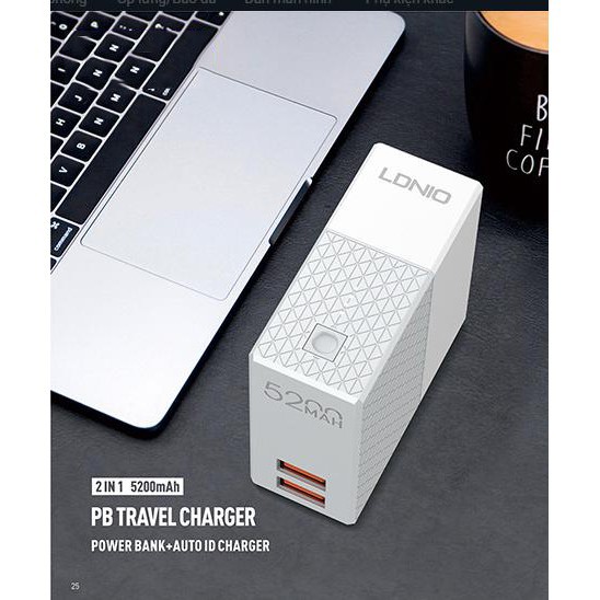 Tên : Bộ sạc kèm pin dự phòng LDNIO PA606 - 5200mAhThương hiệu : LDNIO