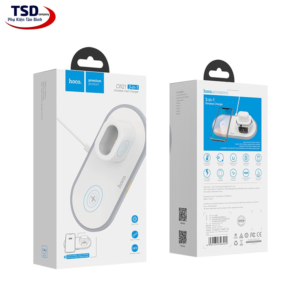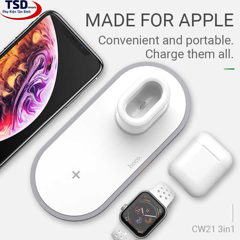 Giới thiệu Sạc Không Dây Hoco CW21 3 in 1 Chính Hãng