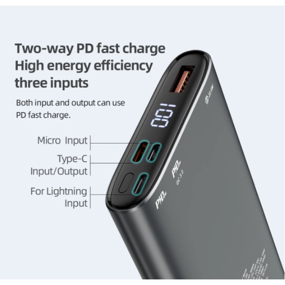 2. Đầu vào: Micro: QC18W; Type-C / Lightning: PD 18W