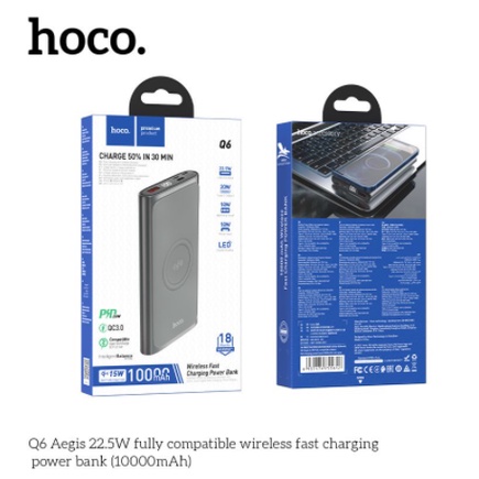 Sạc Không Dây Kiêm Sạc Dự Phòng Hoco Q6 10.000mah - Sạc Nhanh 22.5W - Bảo Hành Chính HãngHOCO / Hoco.Q6 22.5W hoàn toàn tương thích với nguồn điện di động sạc nhanh không dây PD hai chiều + kho báu sạc nhanh QC3.0