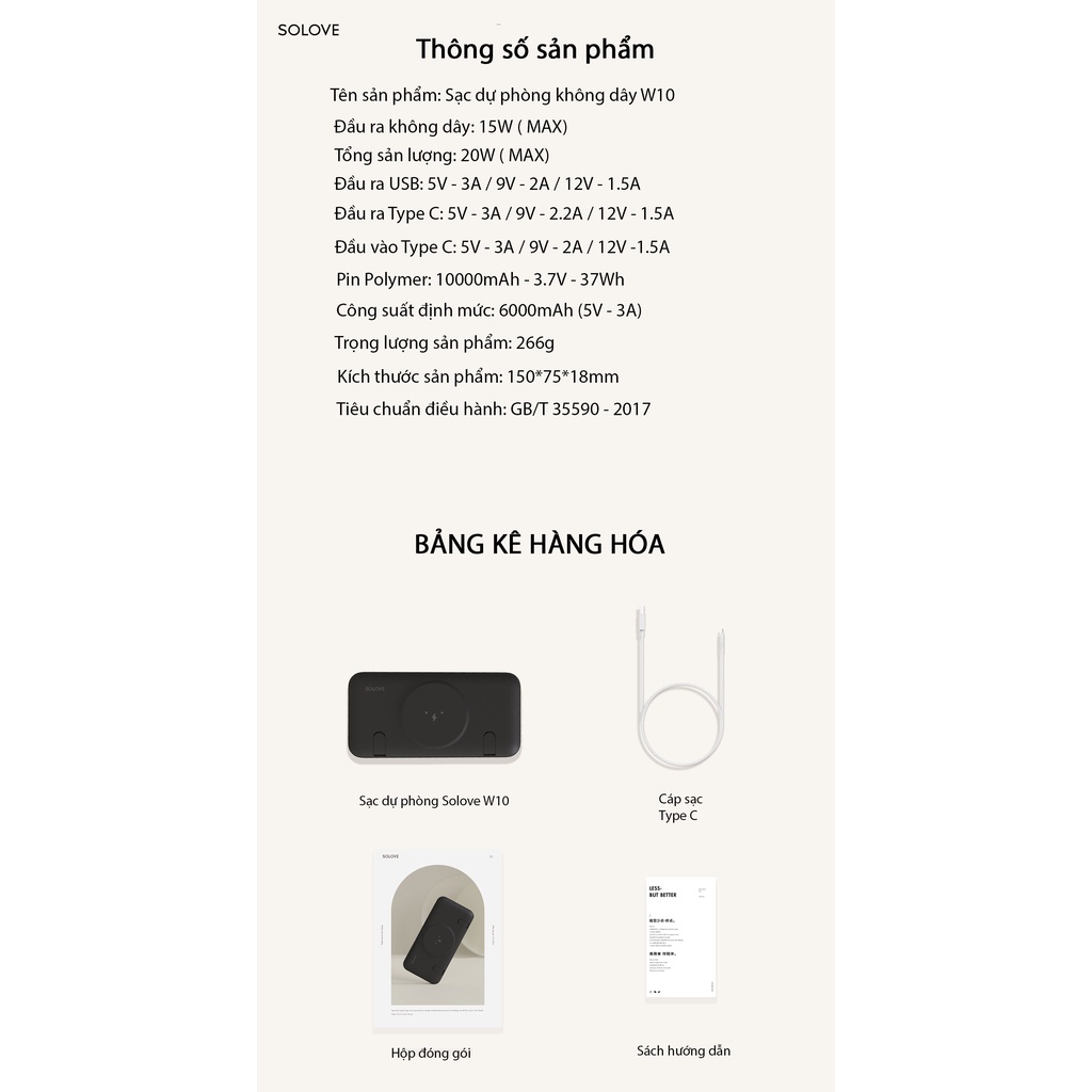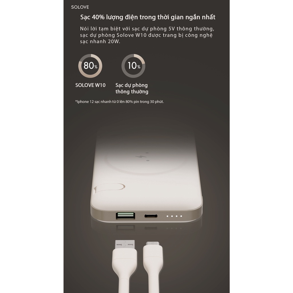 - Tên sản phẩm: Sạc dự phòng không dây Solove W10