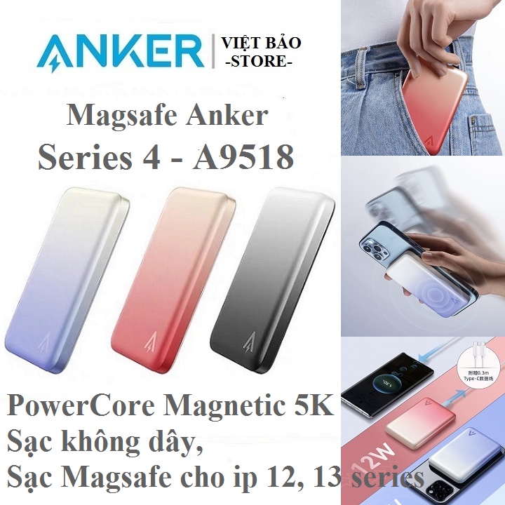 Sạc không dây từ tính Magsafe Anker Magetic 5k- A9518 series 4 dung lượng 5000mAh