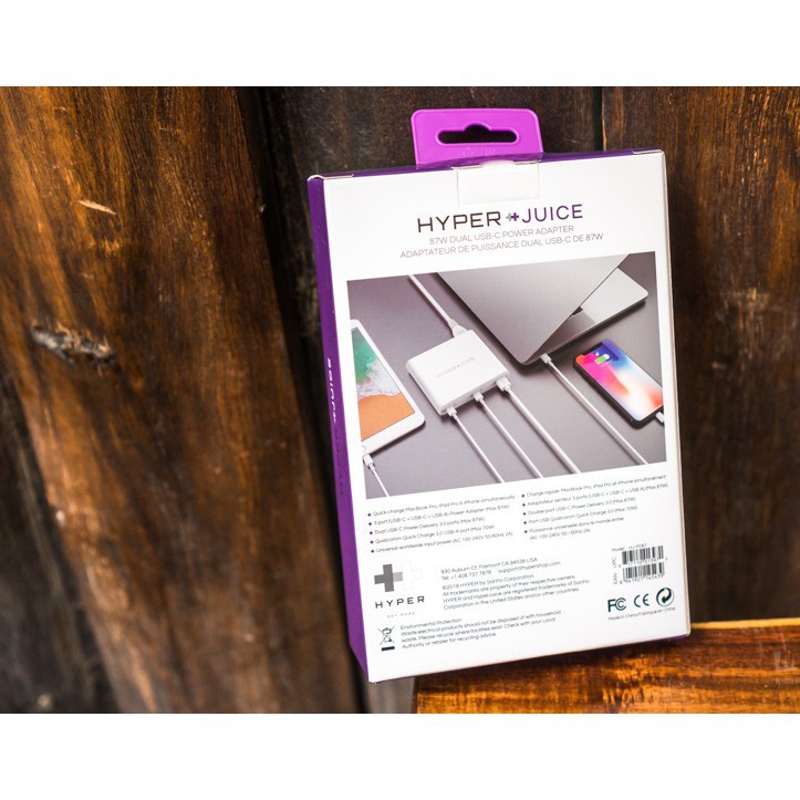 SẠC MACBOOK HYPERJUICE 87W DUAL USB-C /QC4.0 TÍCH HỢP USB-A QC3.0