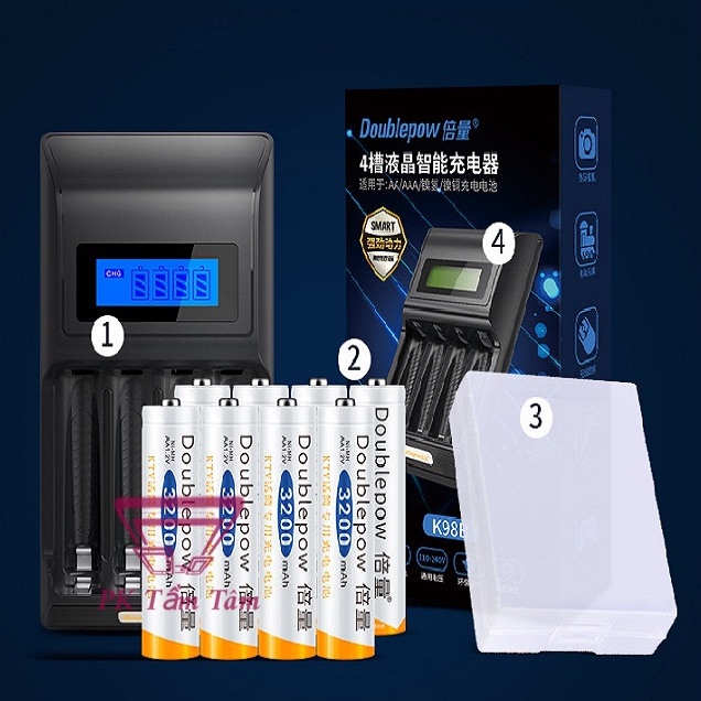 Bộ Sạc Màn Hình LCD tốc độ cao K98B Đen Tặng Tèm Hộp 4 PIN SẠC AA 3200mAh