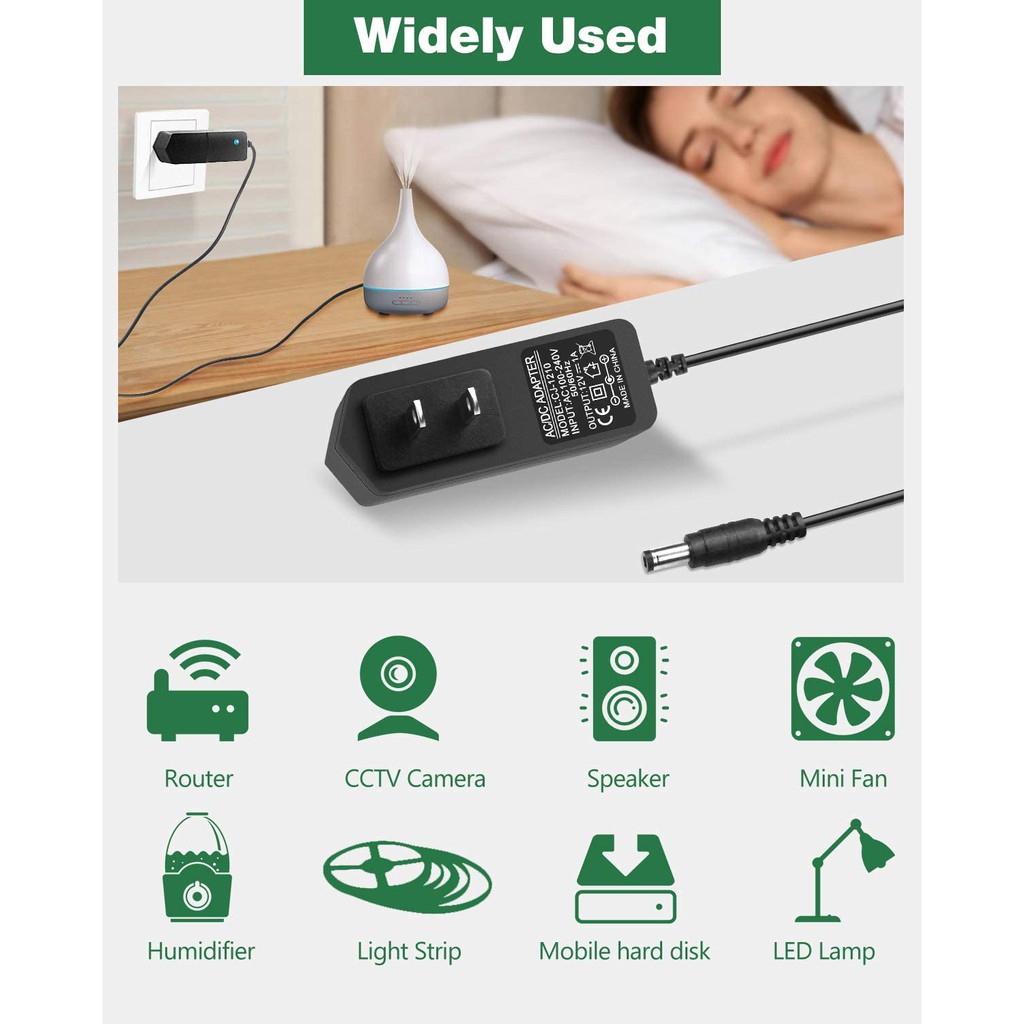 - Dùng được cho nhiều thiết bị thông dụng: hộp phát wifi, CCTV camera, loa, quạt mini, máy hút bụi mini, đèn led để bàn, dải đèn nhấp nháy, máy phun sương tinh dầu, pin dự phòng điện thoại, đàn organ...