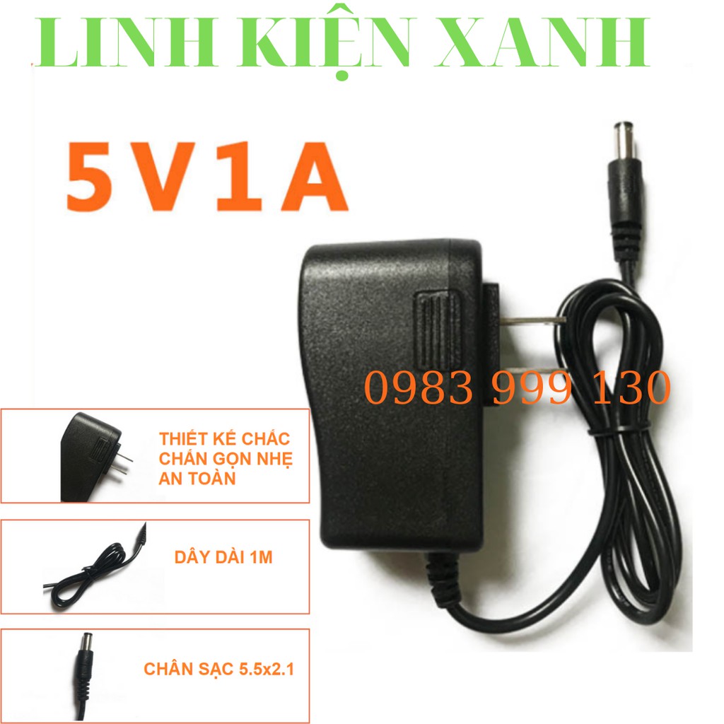 Bộ sạc nguồn Adapter AC-DC: 5V - 1A (1000mAh) Chuẩn cắm 5.5 * 2.5mm / 5.5 * 2.1mm chân toMàu sắc: Đen
