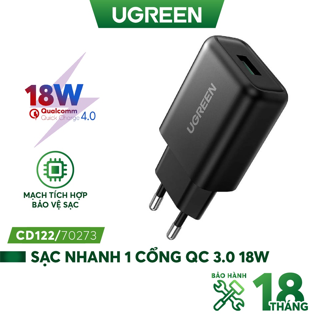Giới thiệu Sạc nhanh 1 cổng USB-A UGREEN CD122 - Hỗ trợ Qualcomm Quick Charge 3.0 công suất 18W
