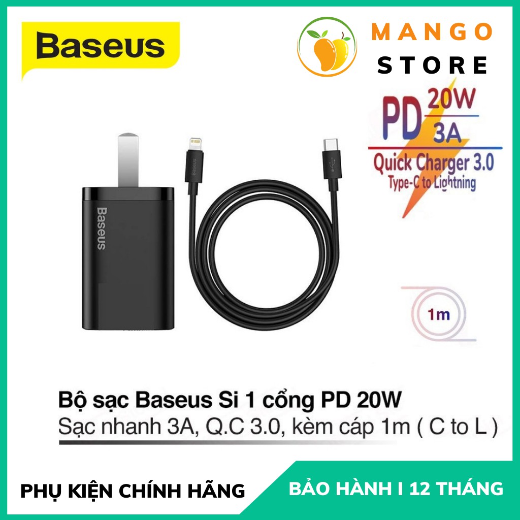 Bộ sạc nhanh 20w iPhone Baseus Tương thích các dòng iPhone X XS XSMax 11 11Pro 11 Promax 12 12Pro 12Promax 13 13Promax