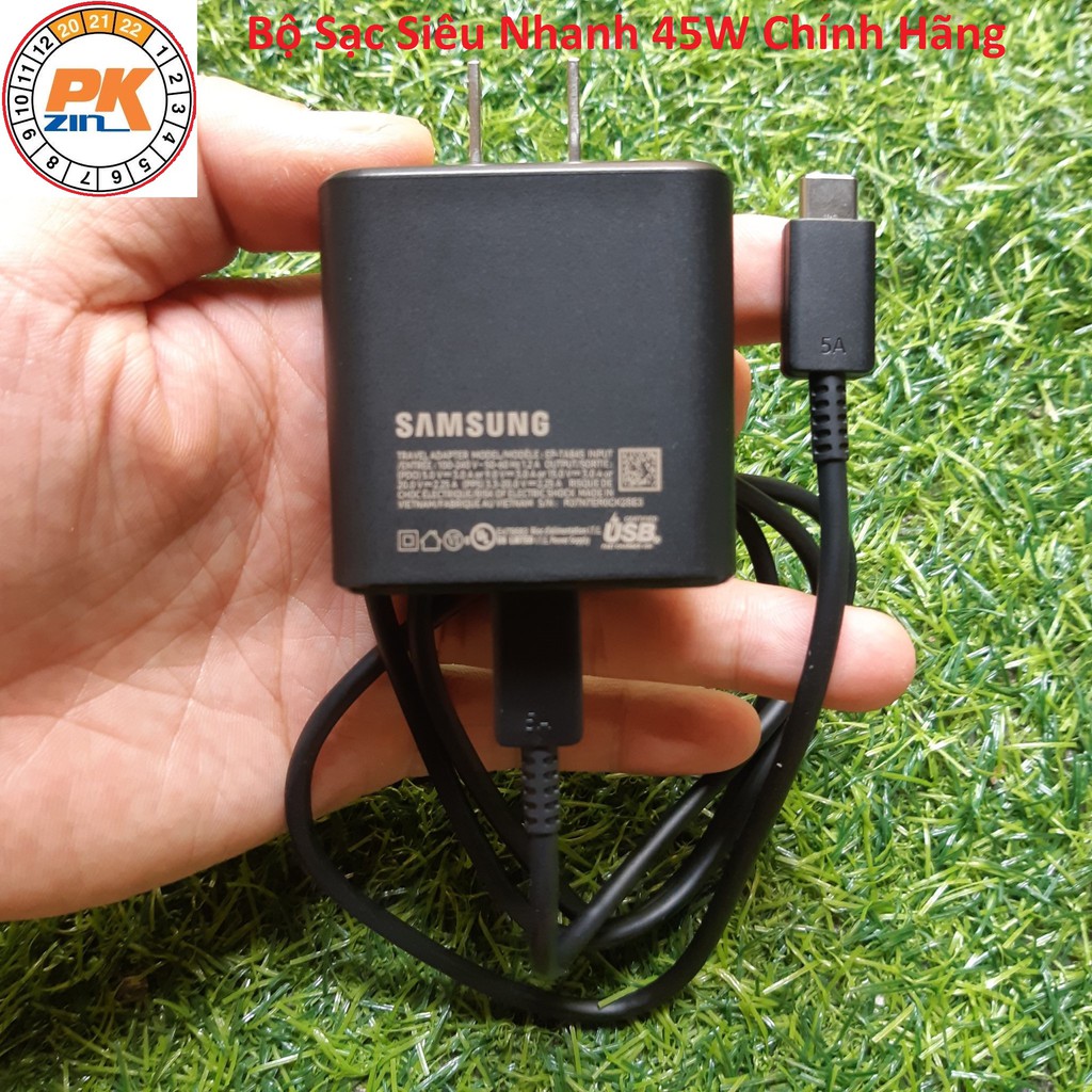 Bộ Sạc Nhanh 45W Chân Dẹt Chính Hãng Samsung, Gồm Cáp 5A, Chắc Chắn Mọi Ổ Điện, Bảo Hành 12 Tháng, Mới 100%
