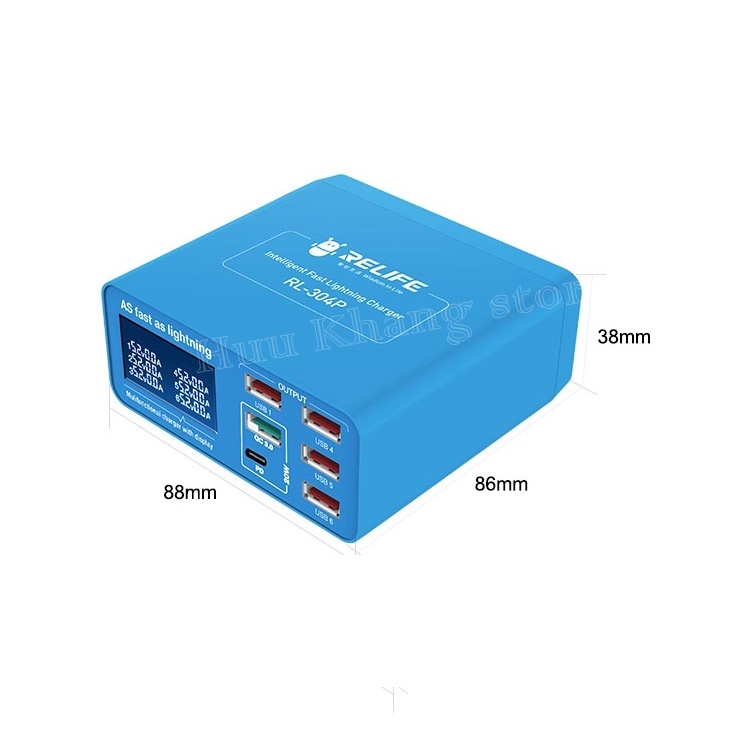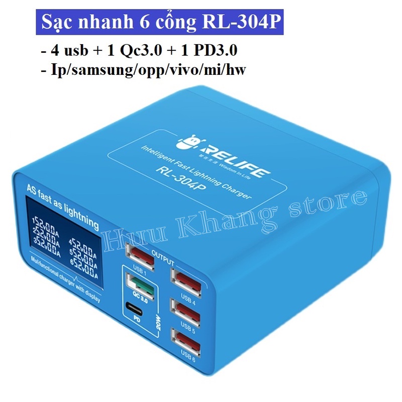 Sạc nhanh 6 cổng RL-304P- Bộ sạc 6 cổng có hiển thị dòng và áp thông dụng nhất hiện nay