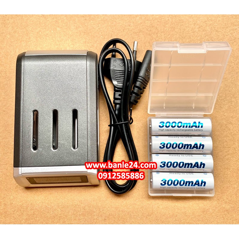 Giới thiệu Bộ sạc nhanh AA/AAA, loại tự ngắt có màn hình cắm điện 220v và pin sạc AA/AAA riêng