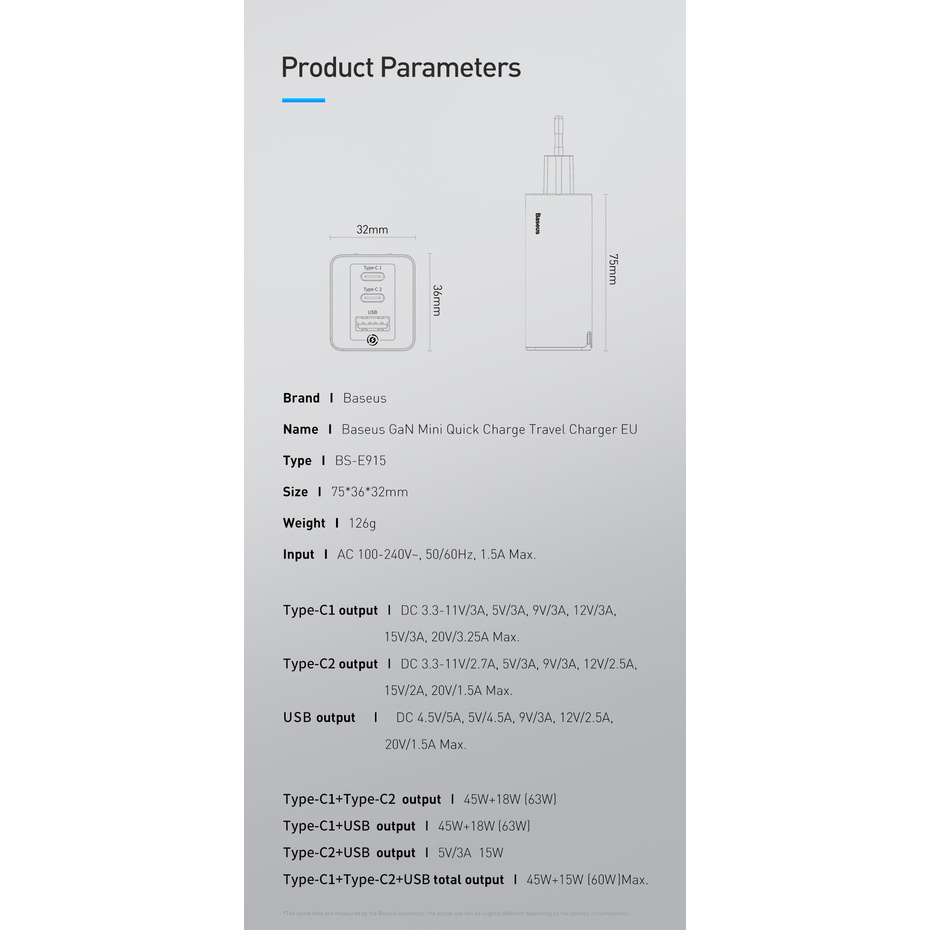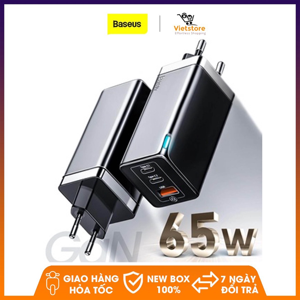 Loại sản phẩm: Bộ sạc GaN Baseus phích cắm chuẩn châu Âu 65W, bộ sạc Baseus GaN phích cắm chuẩn Hoa Kỳ 65W