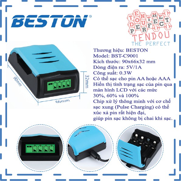 Giới thiệu Bộ Sạc Nhanh Cho Đồ Chơi Đa Năng Pin AAA Beston C9001 Có Màn LCD Cao Cấp