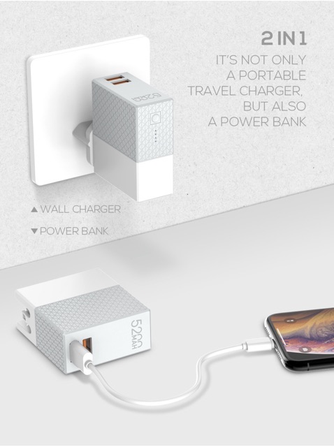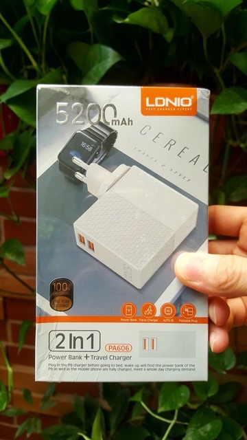 🔯🔯Bộ sạc nhanh du lịch 2 trong 1 LDNiO Power station Travel Charger tích hợp pin dự phòng 5200mAh.- Bộ sạc nhanh du lịch 2 trong 1 LDNiO Power station Travel Charger có thiết kế nhỏ gọn, cơ động, chân cắm có thể xếp gọn , dễ dàng mang theo khi đi du lịch hoặc công tác mà không chiếm nhiều diện tích .