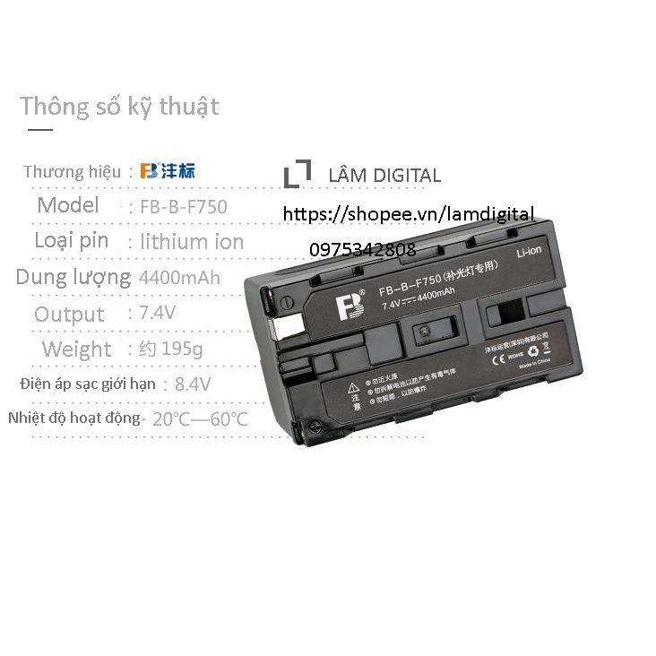 Pin lithium Li-ion FB NP-F750/ NP-F970 (tùy chọn)