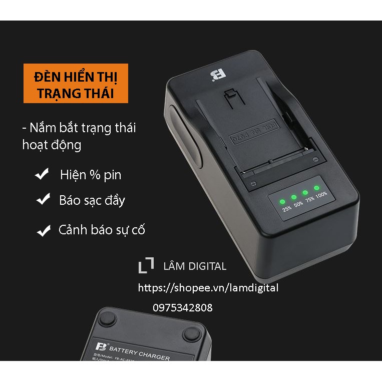 Giới thiệu Bộ sạc nhanh FB loại đơn cho pin Sony F550 F750 F970 F990 F770 1.5A