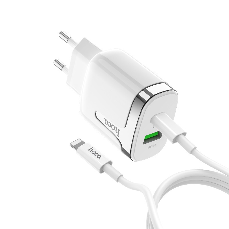 Hoco C79A PD+QC3.0 wall charger USB / Type-C output, EU plug, set with cable Type-C to Lightning PD.