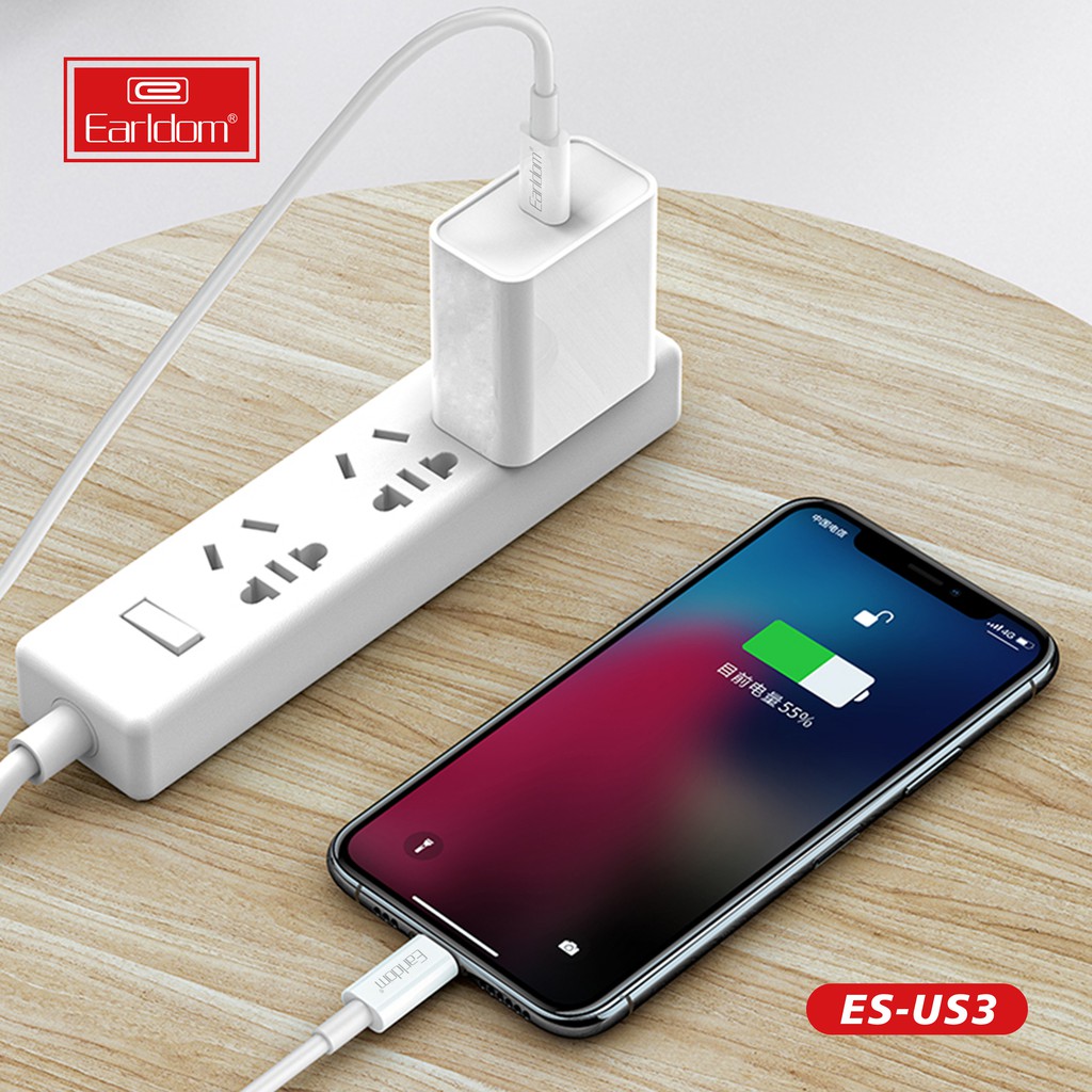 Điện Thoại & Phụ Kiện > Phụ kiện > Cáp, sạc & bộ chuyển đổi > Cáp & Bộ chuyển đổi di động || Bộ sạc nhanh iphone PD 18W chính hãng Earldom ES-US3 được làm từ nhựa cao cấp chống cháy nổCòn hàng