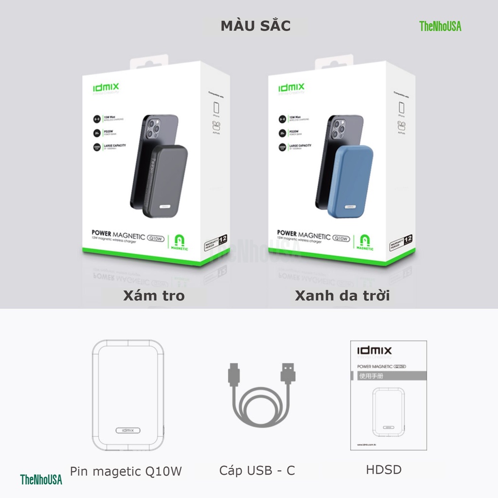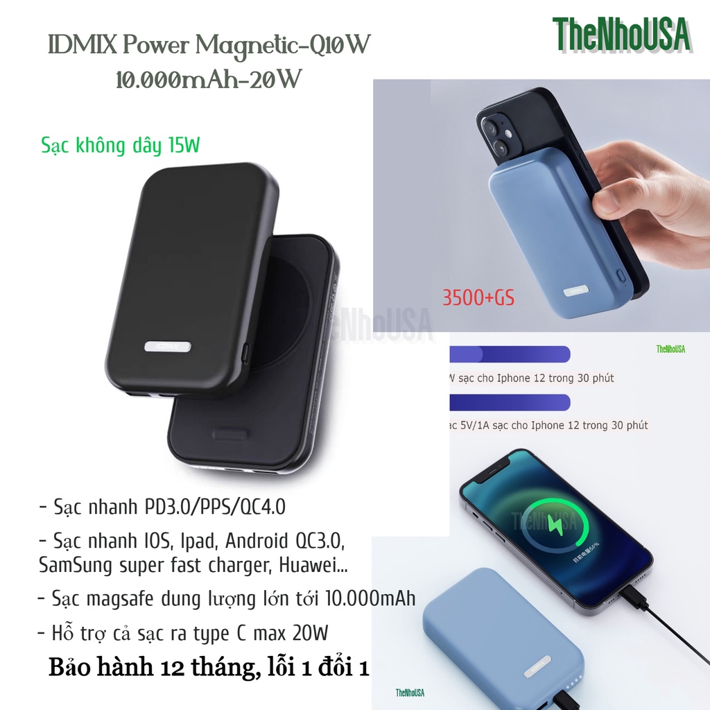 ✅ Sản phẩm chính hàng Idmix - công ty chuyên về các thiết bị sạc, cáp, pin dự phòng, đây là một thương hiệu phụ kiện kỹ thuật số được biết đến với thiết kế xuất sắc, nhiều sản phẩm của IDMIX đã giành được giải thưởng thiết kế Red Dot, và nhiều sản phẩm đã được chứng nhận bởi Apple MFi.✅ Modell Q10W; ra mắt tháng 9/2021.